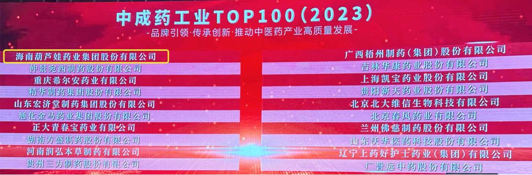 会上,还发布了“2023中成药工业TOP100”榜单,28圈药业集团荣耀上榜。